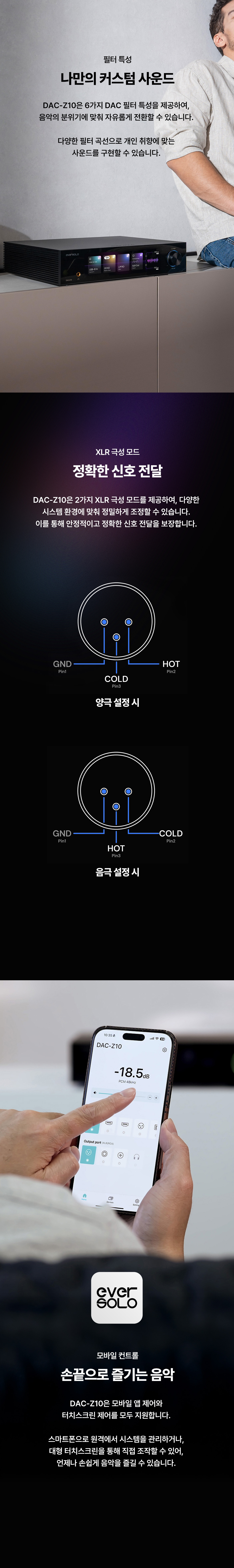 아날로그 입출력: XLR / RCA 입력 및 프리아웃 지원