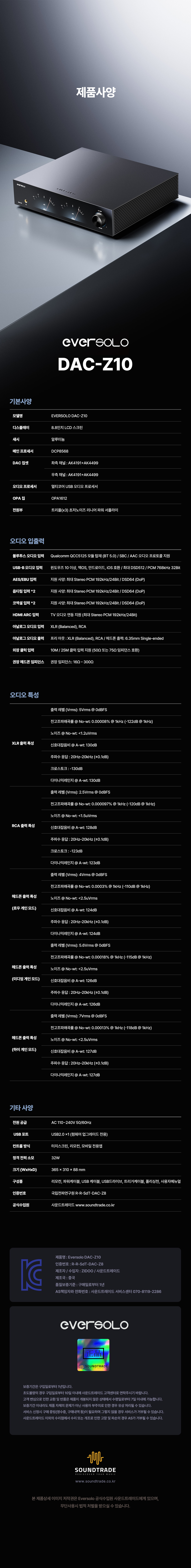 디지털 입력: USB-B, I²S, AES/EBU, 광x2, 동축 ×2, HDMI eARC, 블루투스 5.0
