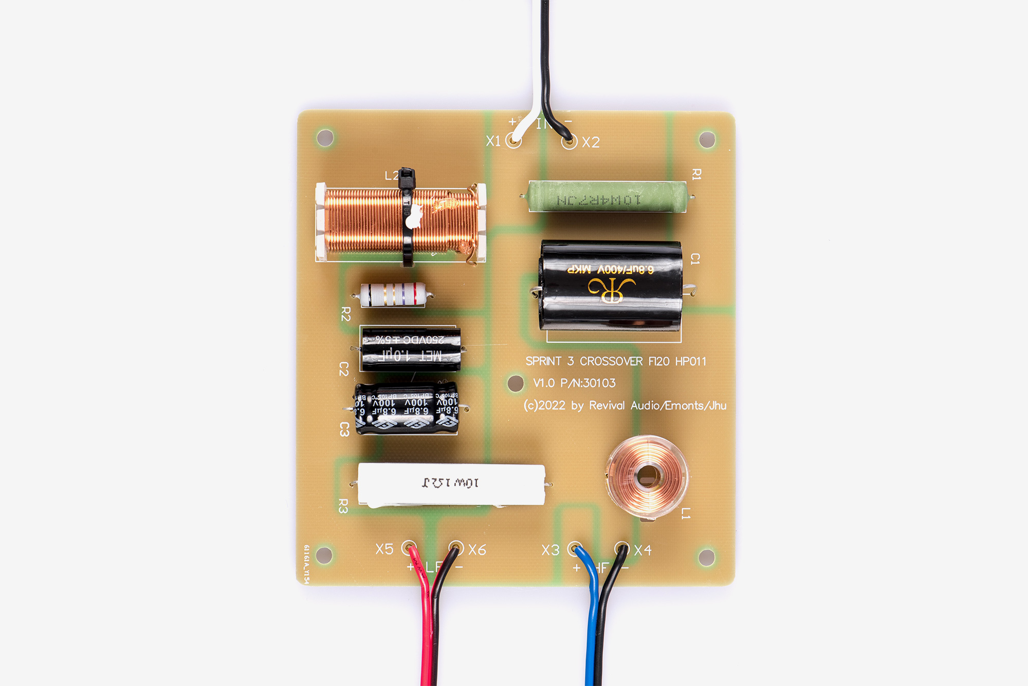 리바이벌 오디오에서는 하나의 튜닝용 보드 위에 실제 부품들을 모두 수작업으로 연결하면서 하나하나의 특성을 측정하는 수작업으로 크로스오버를 조정합니다. 그 결과물이 최적의 사운드를 들려주게 되면, 고급스러운 사운드를 경험하게 됩니다. 여기서 끝이 아닙니다. 이렇게 설계된 크로스오버는 다시 제대로 된 측정을 통해 그 특성을 다시 한 번 체크하게 됩니다.